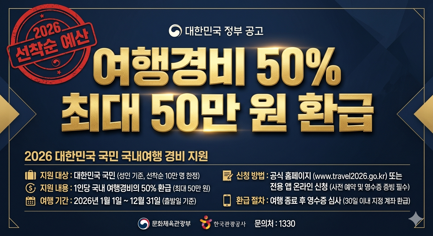 #2026여행지원금 #지역사랑휴가지원 #반값여행 #여행경비환급 #인구감소지역지원 #숙박비환급 #대한민국구석구석 #2026정부지원금 #선착순환급 #지역사랑상품권